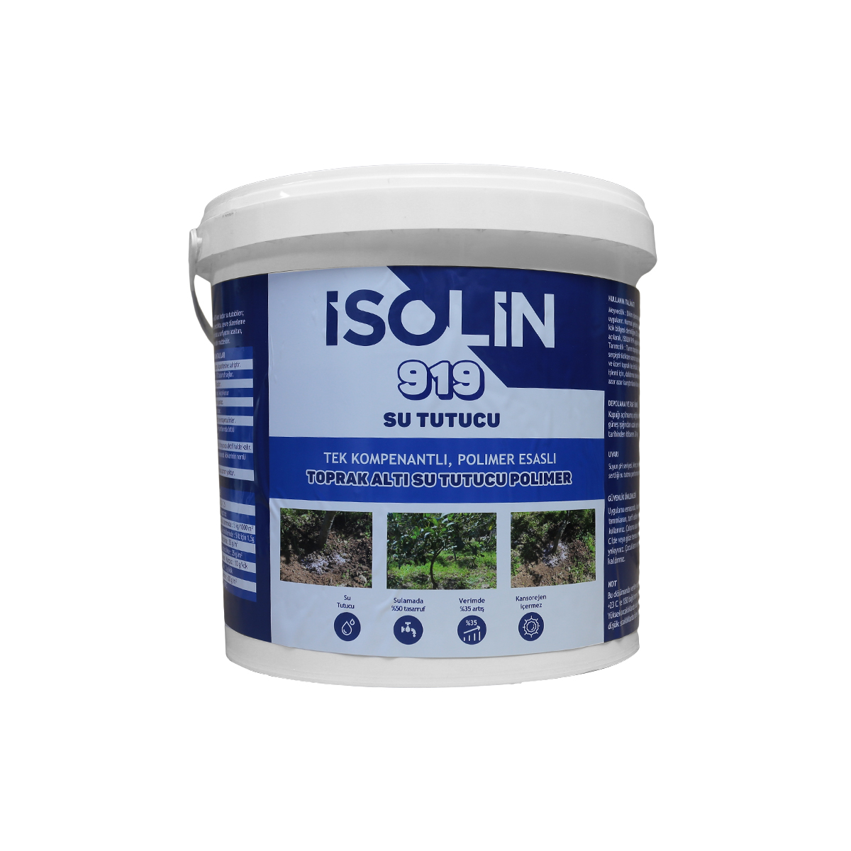 ISOLIN 919, hacminin 600 katı kadar su tutabilen; bahçelerde tarımda, seracılıkta, çevre düzenleme bitkilerinde kullanıldğında su sarfiyatını azaltan, verimi arttıran toprak katkı maddesidir.